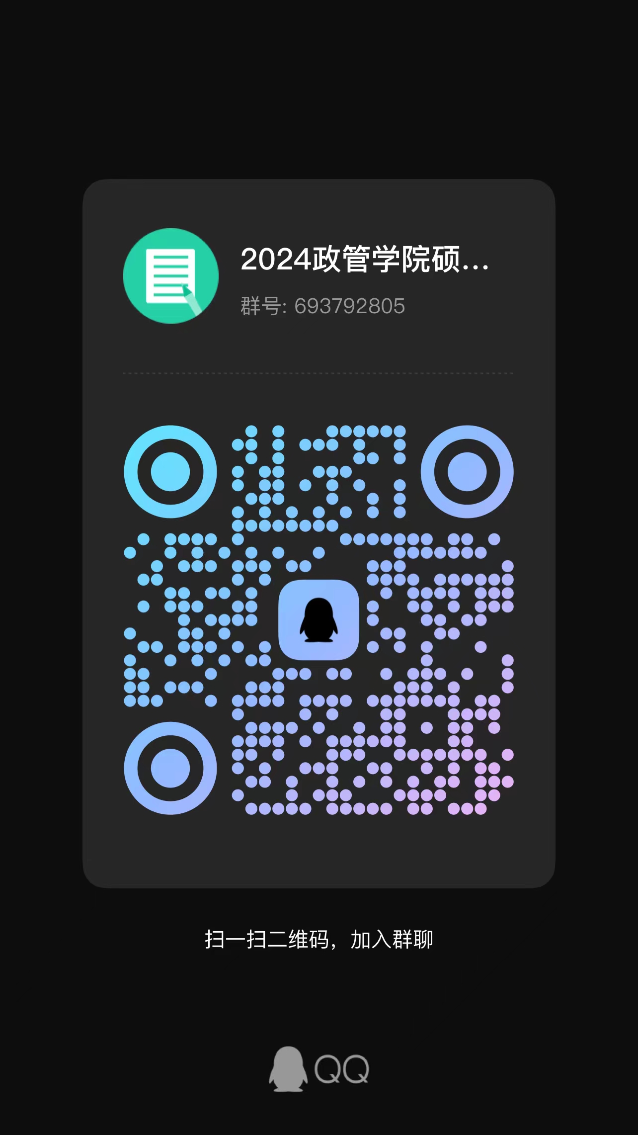 公示名单为准),入群请提供“考生身份证号+报考专业+考生姓名”以等候验证。进群后,所有考生应将“群昵称”修改成“报考专业+姓名”。待所有考生入群后,我院将正式启用QQ群发布消息,请考生时刻关注群通知。