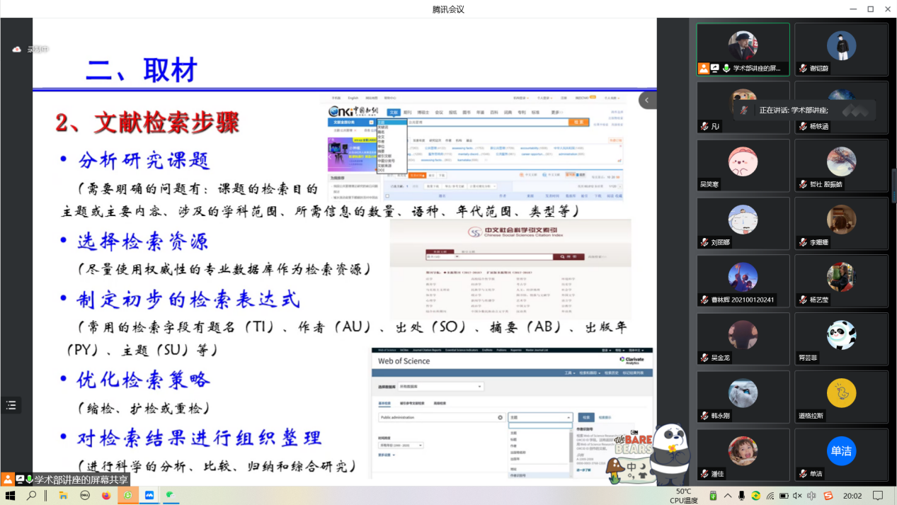 本次指导讲座特别开设了线上腾讯会议分会场,以便因故无法到场的同学听会学习。在讲座中,李进涛老师儒雅的气度、渊博的知识、严谨的逻辑思考、风趣的语言给参与讲座的同学们留下了深刻的印象。同学们积极参与,认真学习,踊跃提出疑惑,讲座现场气氛热烈。