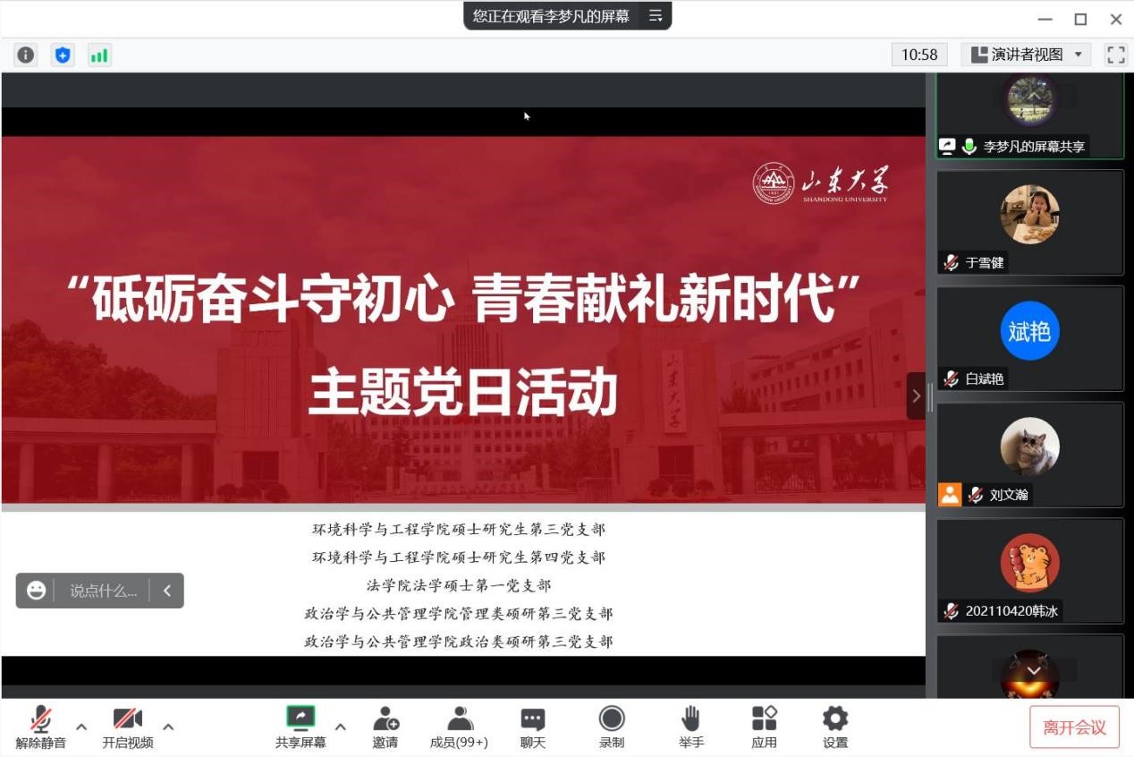 法学硕士第一党支部五个支部联合开展“砥砺奋斗守初心,青春献礼新时代”主题党日活动,邀请榜样模范交流座谈,共同进行理论学习,以实际行动迎接党的二十大胜利召开。活动由黄色网站