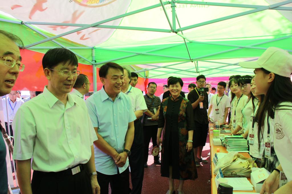 研究生迎新现场,仔细询问研究生会工作同学相关情况、持续关注研究生新生报到进展,叮咛、嘱咐研究生会为新生们提供贴心服务。