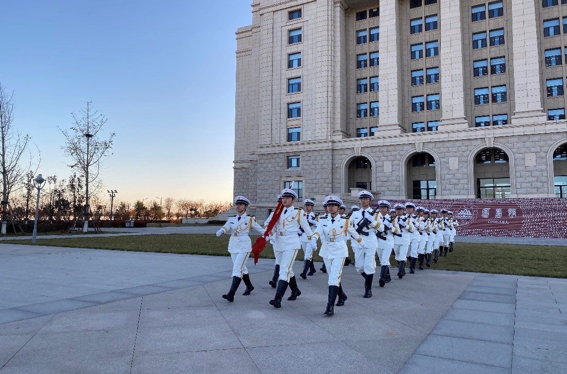 当日7时05分,国旗班的升旗手们着装整齐、迈着矫健铿锵的步伐,护卫鲜艳的五星红旗登上升旗台。伴随着雄壮激昂的义勇军进行曲,五星红旗冉冉升起、迎风舞动,成为清晨天空中最绚烂的一道红色。全体参会人员高唱国歌,行注目礼,追忆祖国70年风雨的激昂岁月,感慨大国崛起的自豪骄傲,抒发建功立业新时代的使命责任。