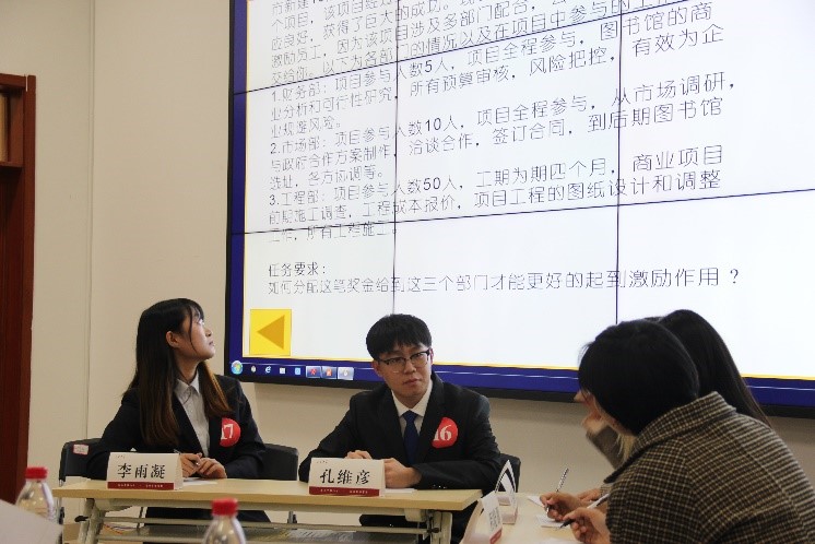 研究生会指导老师李汉烨做为嘉宾出席比赛,活动还有幸邀请到青岛酷特职能股份有限公司招聘主管陈为凯、海信集团控股股份有限公司招聘主管张淼、山东劳谦律师事务所律师及合伙人邵福利、海联金汇科技股份有限公司人力中心部长官志军作为本次比赛的评委老师。比赛分为无领导小组讨论与单人结构化面试两个环节,通过紧张有序的比赛进行了真实情境下招聘模拟。评委老师就在场选手的表现分享了各类面试中应该注意的问题,对同学们的职场困惑进行解答,到场同学表示受益匪浅。