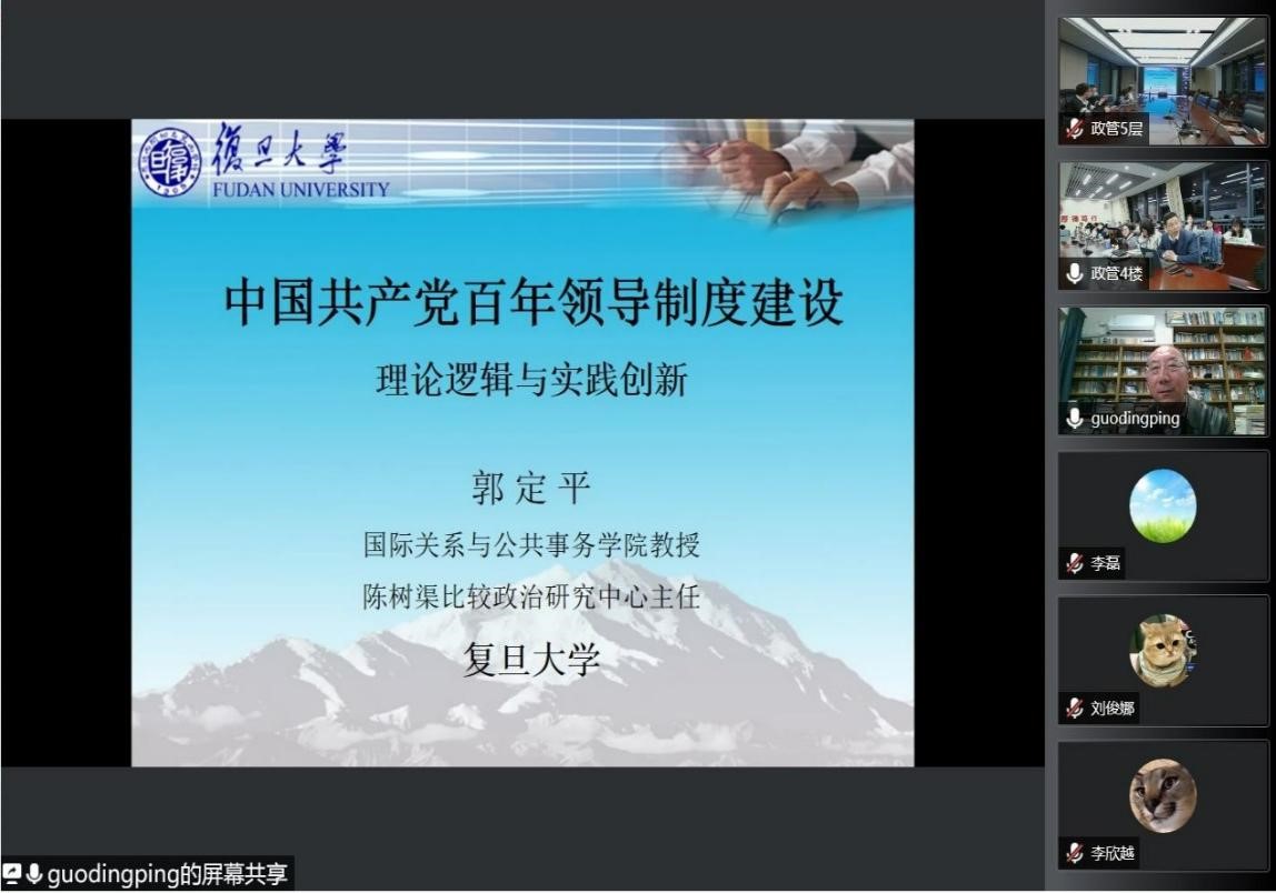 郭定平教授应邀作了题为“中国共产党百年领导制度建设的理论逻辑与实践创新”的线上讲座。讲座由黄色网站大全