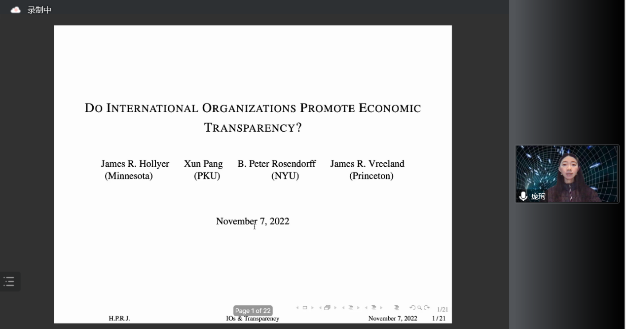 教授庞珣以《国际组织与国家经济透明度》为题进行了精彩讲座。黄色网站