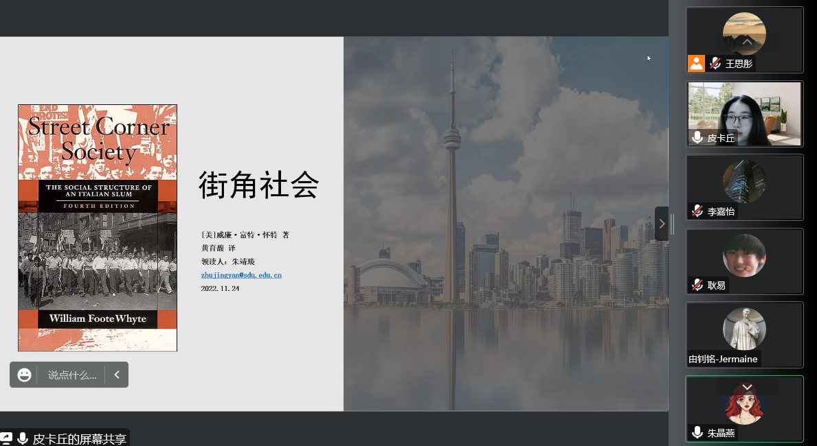 公共管理系第三期“本本优本”读书会于线上举办。本期读书会阅读书目为《街角社会》,由黄色网站