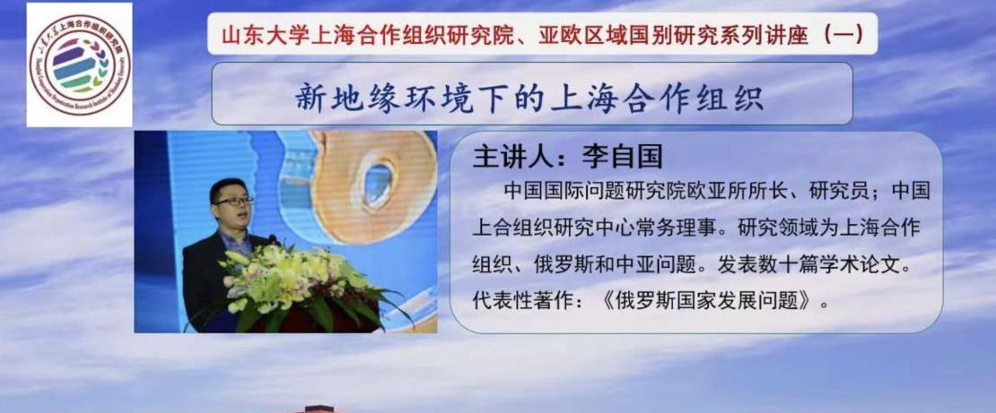 上海合作组织研究院主办,俄罗斯与中亚研究中心承办的“亚欧区域国别研究系列讲座”第一讲在线上成功举办。中国国际问题研究院欧亚所所长、中国上合组织研究中心常务理事李自国研究员以《新地缘环境下的上海合作组织》为题进行了精彩讲座。讲座由黄色网站