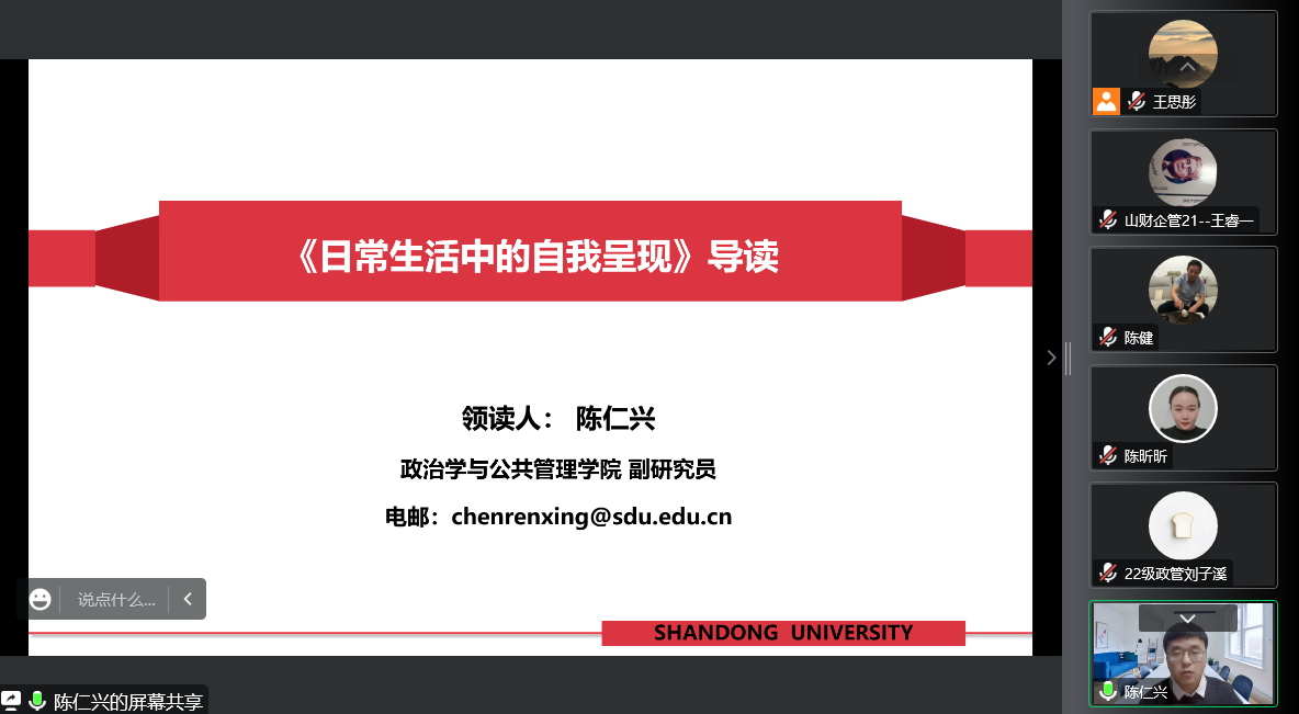 公共管理系本学期第四期“本本优本”读书会于线上举办。本期读书会阅读书目为《日常生活中的自我呈现》,由黄色网站