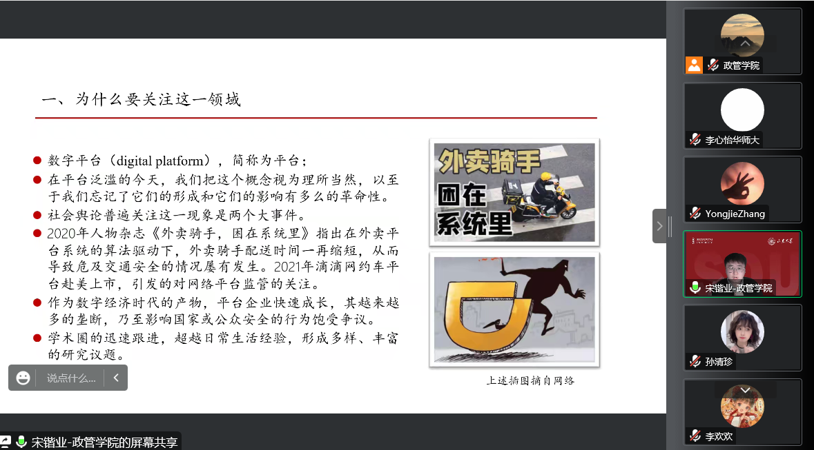 公共管理系本学期第五期望远青年学者沙龙于线上召开,本场讲座主题为:数字平台与公共管理研究想象。讲座由黄色网站