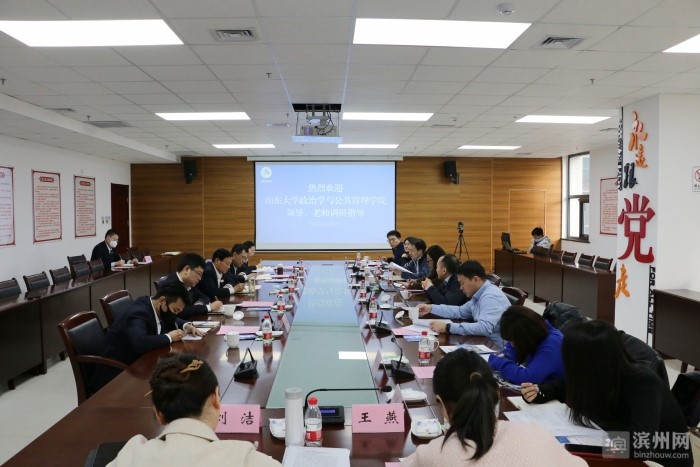 在服务山东、创新发展等方面取得的成效。双方围绕加强人才培养供需衔接、完善校地协同育人体系等议题与滨州市行政审批服务局、滨城区行政审批服务局等单位进行了座谈。随后,李振、俞少宾、杨志与案例调研团队就“中介超市”、营商环境建设等主题与相关单位开展了深入的调研交流。