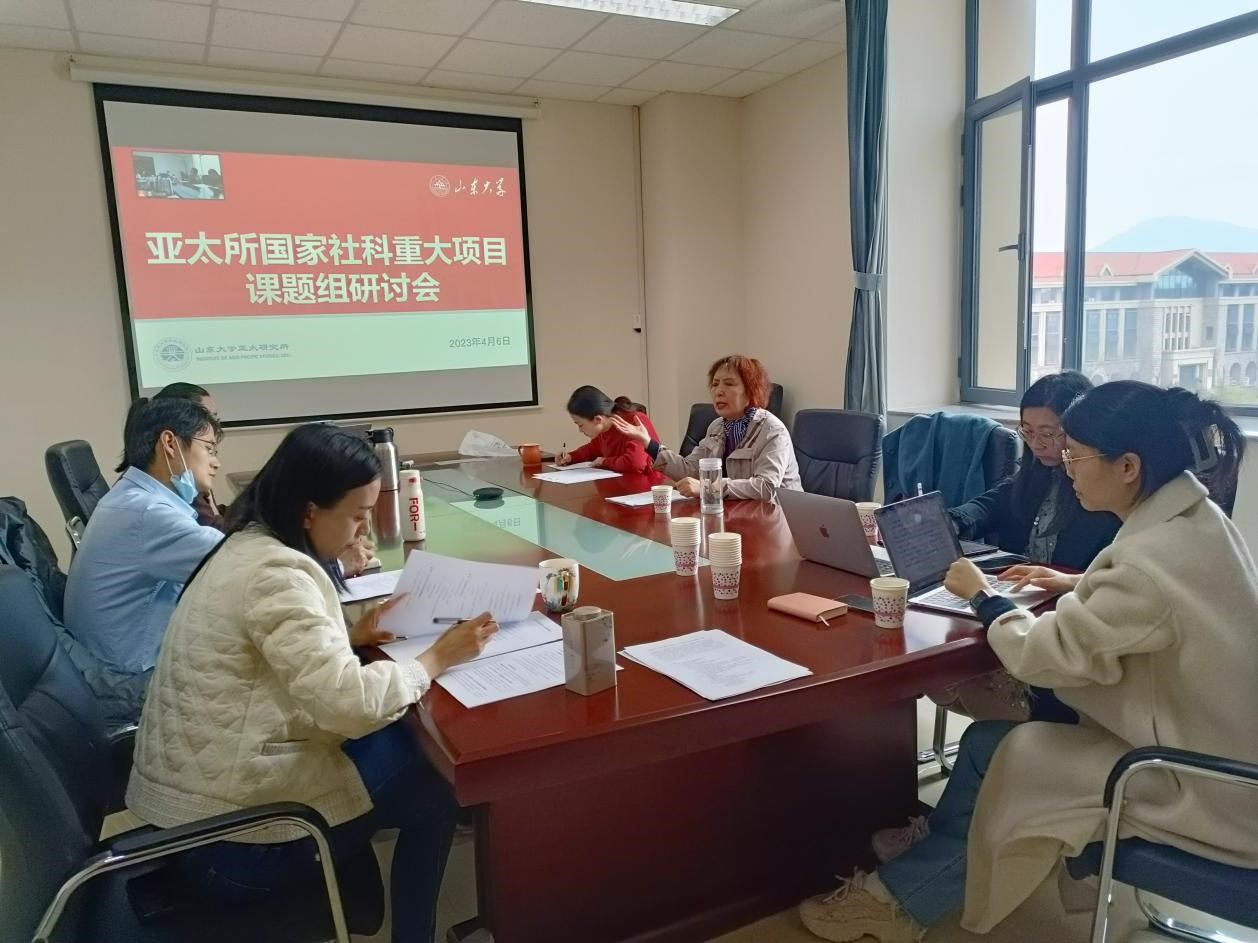 亚太研究所国家社科专项基金课题组第三次集体研讨会在青岛校区华岗苑南楼举行。课题组首席专家、亚太研究所所长杨鲁慧教授主持会议,子课题负责人、亚太研究所副所长赵玙佳副教授、副所长钟诚副教授、亚太地区环境与中国周边外交研究中心主任李昕蕾教授和副主任赵婷副教授、亚太经济贸易合作研究中心主任张岩副教授、亚太大国关系与地区安全研究中心主任王鹏权副教授、李国辉博士参加会议。