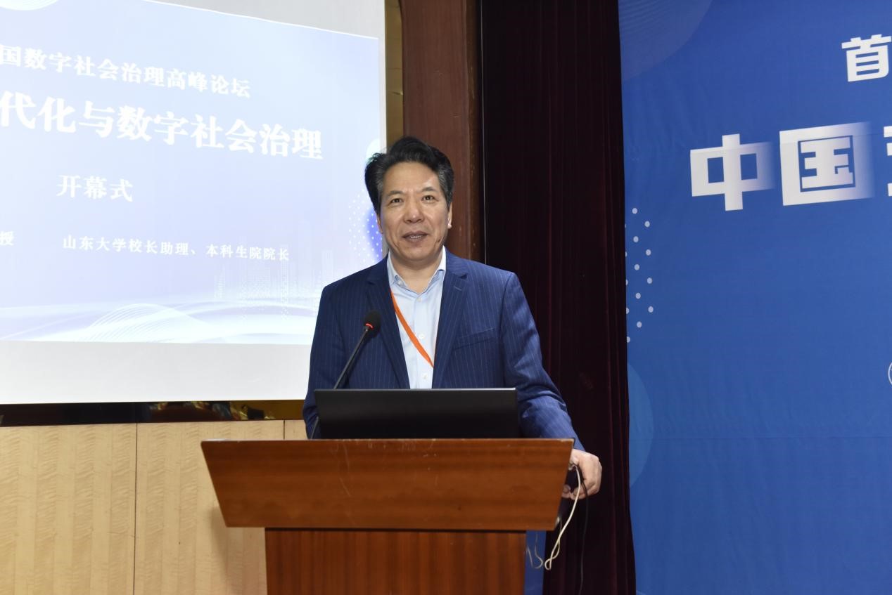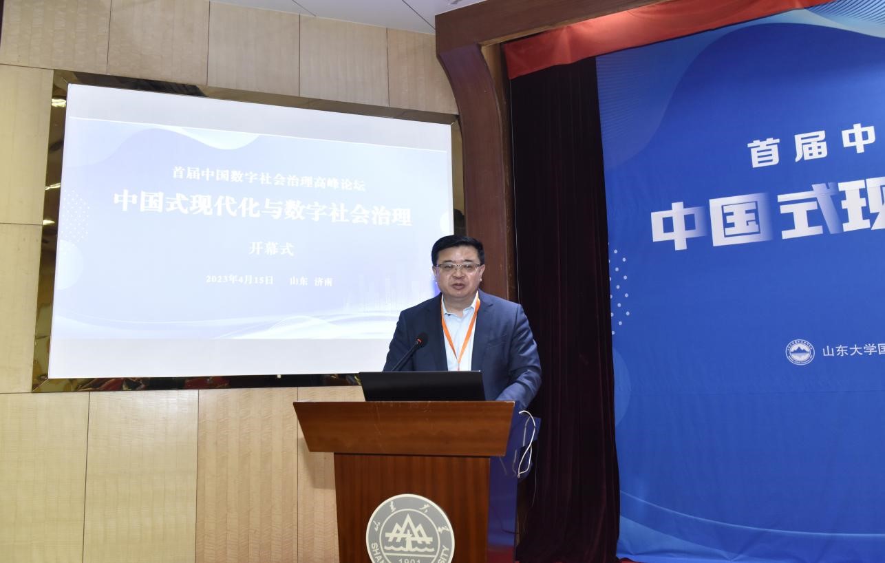 副院长孟天广教授作了题为《数字化国家能力—国家治理数字化转型的信息逻辑》的报告,他指出数字时代的国家和社会是在数字技术赋能“国家”基础上的数字化国家治理结构优化和数字化国家能力生产过程,并提出我国应该着重围绕个体层面、社会层面和市场层面来丰富国家能力理论,以此综合构建提升数字化国家能力。济南市政法委副书记谢圣仁作了题为《数字赋能社会治理,塑强省会发展新优势》的报告,从技术创新、资源整合、部门协作等方面介绍了济南的社会治理创新实践。