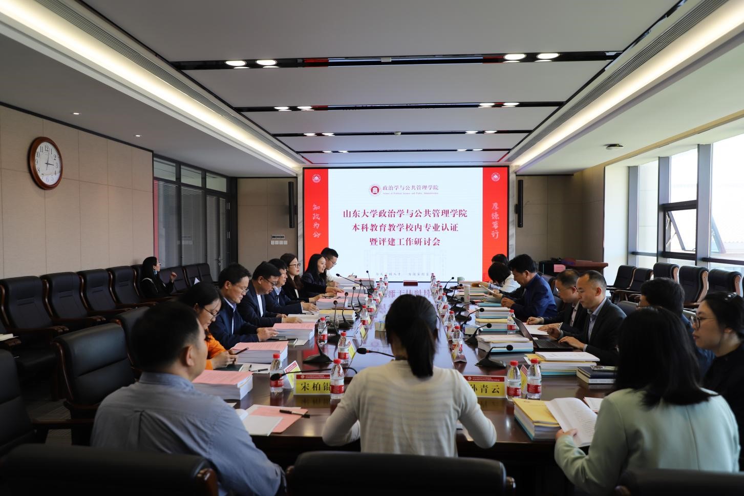 已开展的自评工作情况。国际政治系、政治学与行政学系、公共管理系及科学社会主义系各系主任汇报各系专业建设情况。