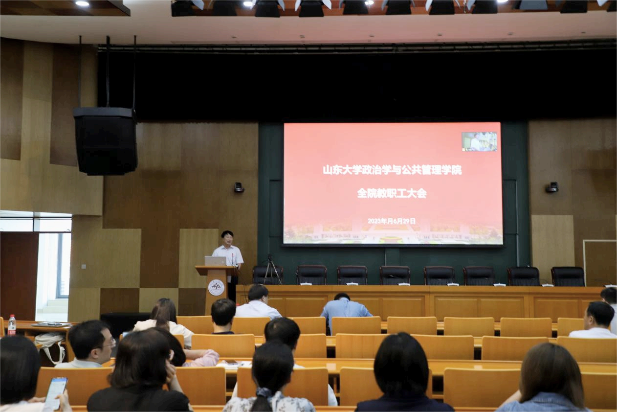 副院长刘昌明、党委副书记马桂兰、副院长朱贵昌、党委副书记石莹、副院长赵婷、MPA教育中心主任、院长助理孙宗锋分别从研究生招生与培养、学生思想教育与管理、科研工作及国际交流与合作、教职工思想政治及师德师风建设、本科生教育教学及实验室管理、MPA教育工作等方面介绍了上半年开展的重点工作。