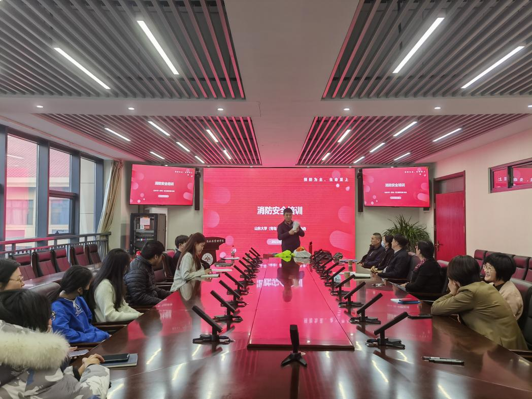 于华岗苑南楼四楼中厅会议室开展教工消防安全培训,青岛校区党工委保卫部段德玺科长、孙垚老师为黄色网站