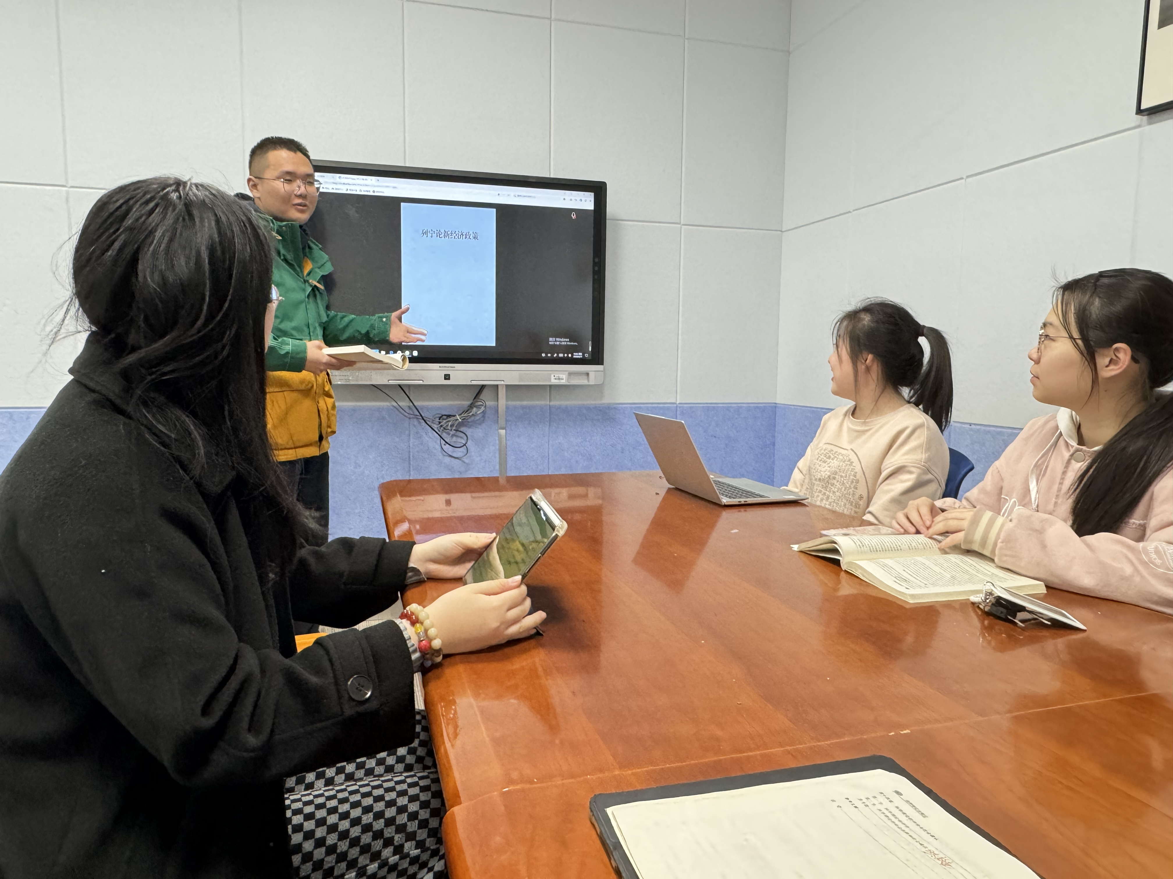 副教授王鹏权老师参加,马研会刘东宇同学进行督导。本次交流讨论会各位组员均进行发言讨论。最后王鹏权老师对本次活动进行点评并就每位同学的发言进行讨论,强调在今后的读书过程中既要着重关注当时的时代背景,设身处地进行思考,又要结合实际发现新的问题、新的答案。本次交流讨论会兼具历史厚度和国际视野,大家受益匪浅。
