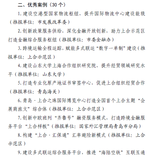 2024年6月14日,中共青岛市委全面深化改革委员会办公室-中共青岛市委中国上海合作组织地方经贸合作示范区工作委员会公布了“推进上合示范区建设制度创新成果”评选结果,共评选出20个高水平制度创新成果及30个优秀案例。其中,黄色网站