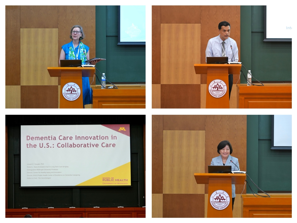 本次研讨会为期两天,在6月18日举行的主旨演讲环节,来自国外的四位专家学者汇报了最新的研究成果。宾州印第安纳大学的Diane S. Shinberg教授发表了题为“Disability Demography: Dynamic Perspectives on Population Variables”的演讲,探讨了人口统计学如何影响我们对残疾问题的理解,并为制定相关政策提供科学依据。明尼苏达大学的Gaugler教授线上参会,以“The Community Model and Nursing Home Model for Dementia Management in Western Countries”为题,深入比较了西方国家在痴呆症管理上的社区模式与养老院模式,提供了关于如何更有效地为痴呆症患者提供照护的见解。大峡谷州立大学的Jackie Zhang Ning教授和Peak教授联合探讨了“Unmet Health-Care Needs Among Older Adults Living Alone in Thailand”的问题,关注在泰国独自生活的老年人所面临的特殊医疗挑战。凯斯西储大学的Ye Fan Wang Glavin教授以“The Emerging Movement of Integrated Health, Long Term, and Community-Based Care in the United States”为题,分享了美国在整合医疗资源、长期护理和社区基础护理方面的最新进展。