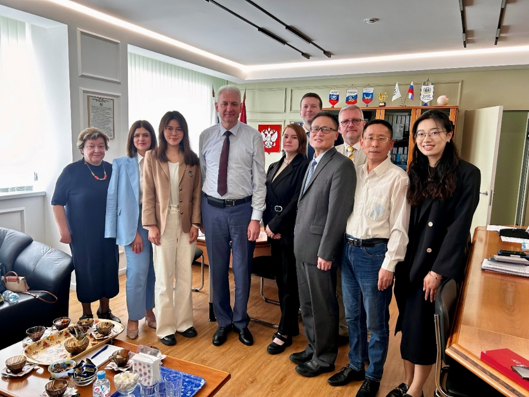 一行与莫斯科罗蒙诺索夫国立大学国家管理系进行了友好座谈。座谈会上,双方在回顾现有合作成果的基础上,就教育理念、课程设置、教学方法等方面展开交流,达成了多项共识,共同期望未来在学生联合培养、学者互访、上合数字经济产业研究等方面进行更深层次的合作。
