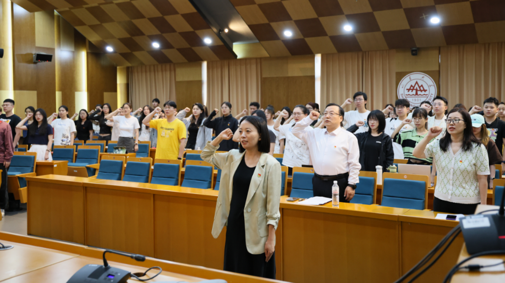 在青岛校区华岗苑南楼五楼报告厅举行新党员入党宣誓大会。黄色网站