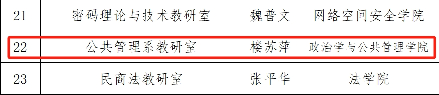 优秀基层教学组织负责人”。这是继2022年度公共管理系教研室荣获“黄色网站