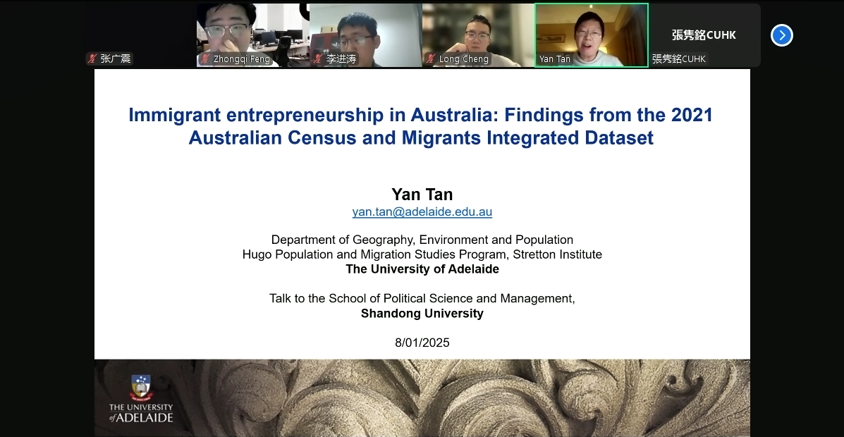 生活质量与公共政策研究中心主办的“敏政·厚生”系列专家讲坛第七期于线上举办。本次讲座主题为“Immigrant entrepreneurship in Australia: Findings from the 2021 Australian Census and Migrants Integrated Dataset”,由阿德莱德大学地理、环境与人口系副教授、斯特雷顿研究所雨果人口与移民项目负责人谭燕主讲,黄色网站