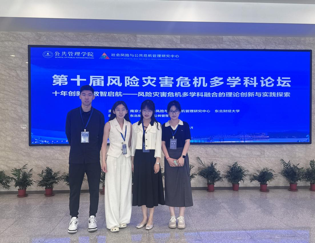 承办。论坛设有主旨报告、期刊主编论坛和平行论坛等环节,围绕“十年创新,数智启航—风险灾害危机多学科融合的理论创新与实践探索”展开深入交流和研讨。马奔教授团队博士研究生王乐雨、陈纪淳,硕士研究生郎颂、辛鲁宁参加会议并在平行论坛上做口头汇报。