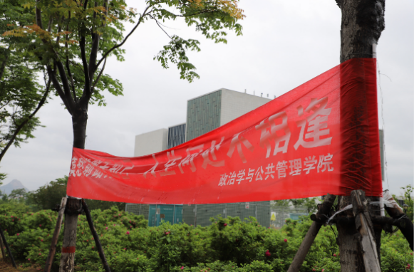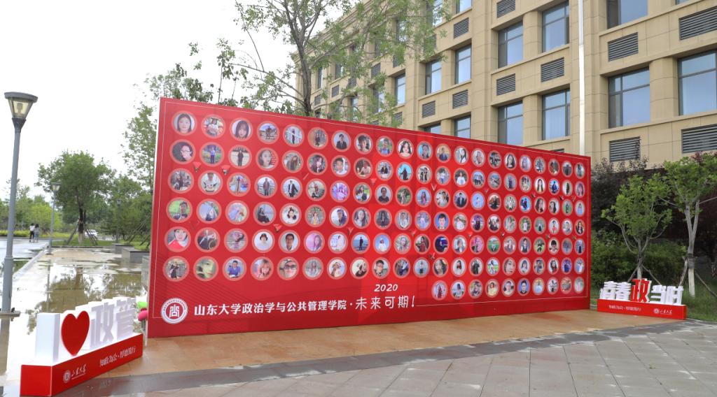 制作了包括全体毕业生照片的创意背景板,并在院楼门厅摆放“I LOVE 政管”“青春政当时”等创意模型及其他创意板,以供毕业生进行合影留念。