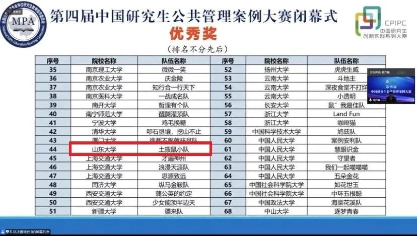 与老师的高度重视和团队成员的精准配合。成绩与名次是次要的,态度和拼搏才是我们需要继续秉承和追求的精神。愿接下来我院愈战愈勇,再创佳绩,盼公共管理行之为公,国泰民安。
