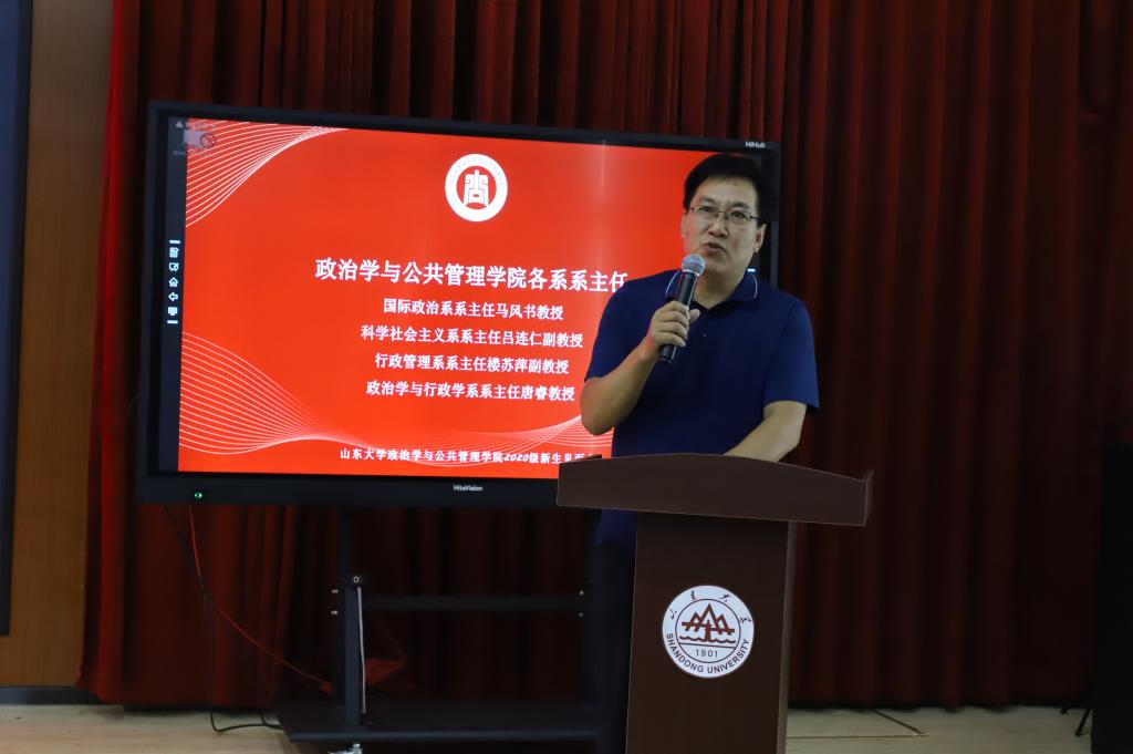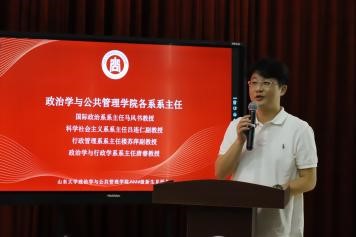 国际政治系系主任马风书、科学社会主义系系主任吕连仁、行政管理系副系主任孙宗锋、政治学与行政学系系主任唐睿依次向新生介绍了各系的建设情况和发展历史以及师资状况,介绍了专业设置的特点、专业培养和本科专业特色班规划,也对新生提出了学习发展的新要求。
