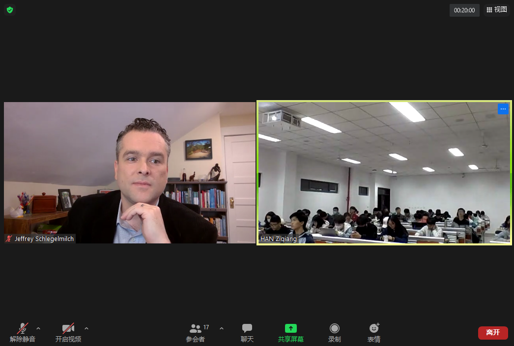 问答环节,Schlegelmilch教授与同学们就福岛核废水排放、中国健康码政策等问题展开讨论交流。最后,讲座在热烈的掌声中圆满结束。